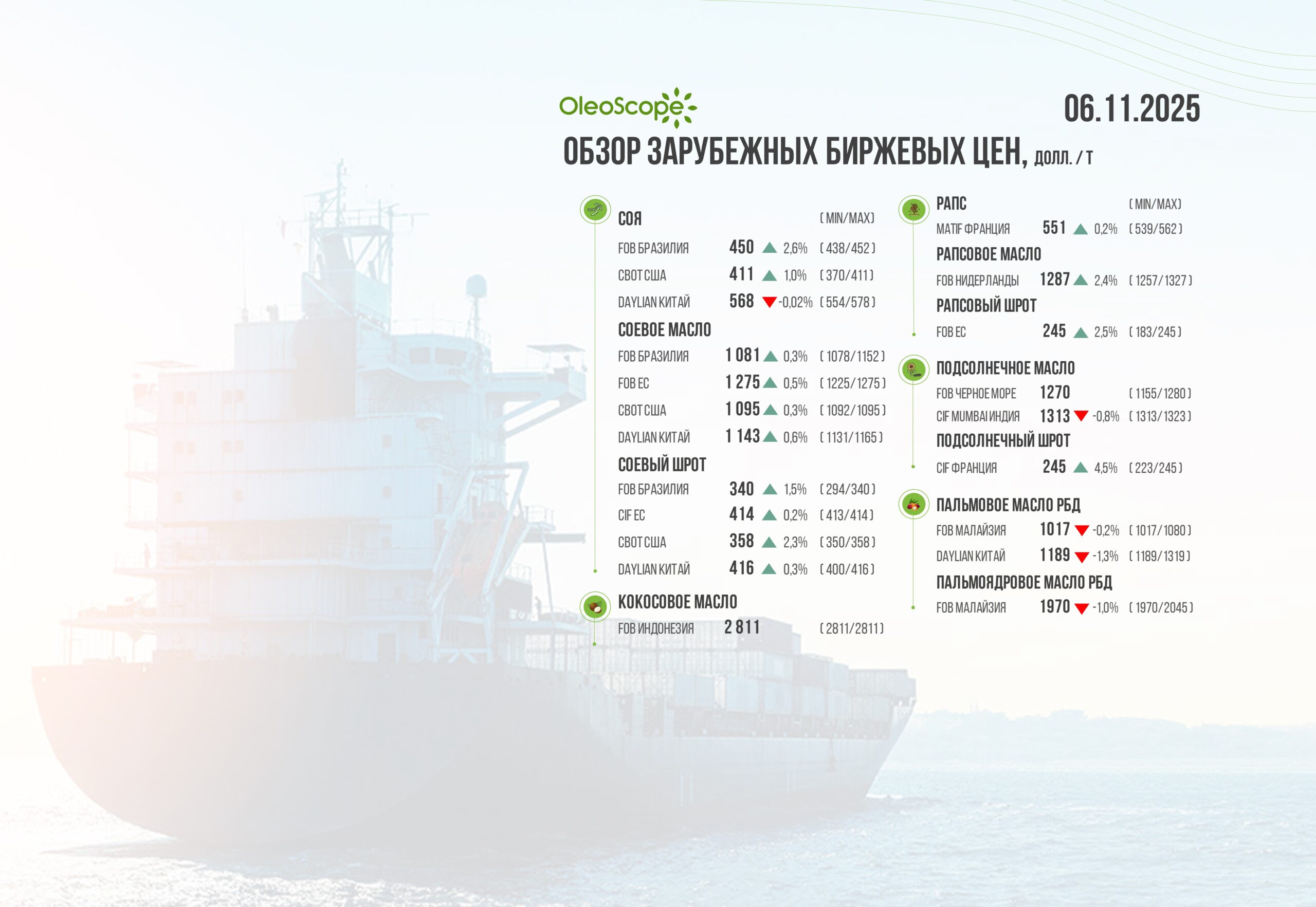 Биржевые цены на масла, масличные и шроты. Ежедневный обзор