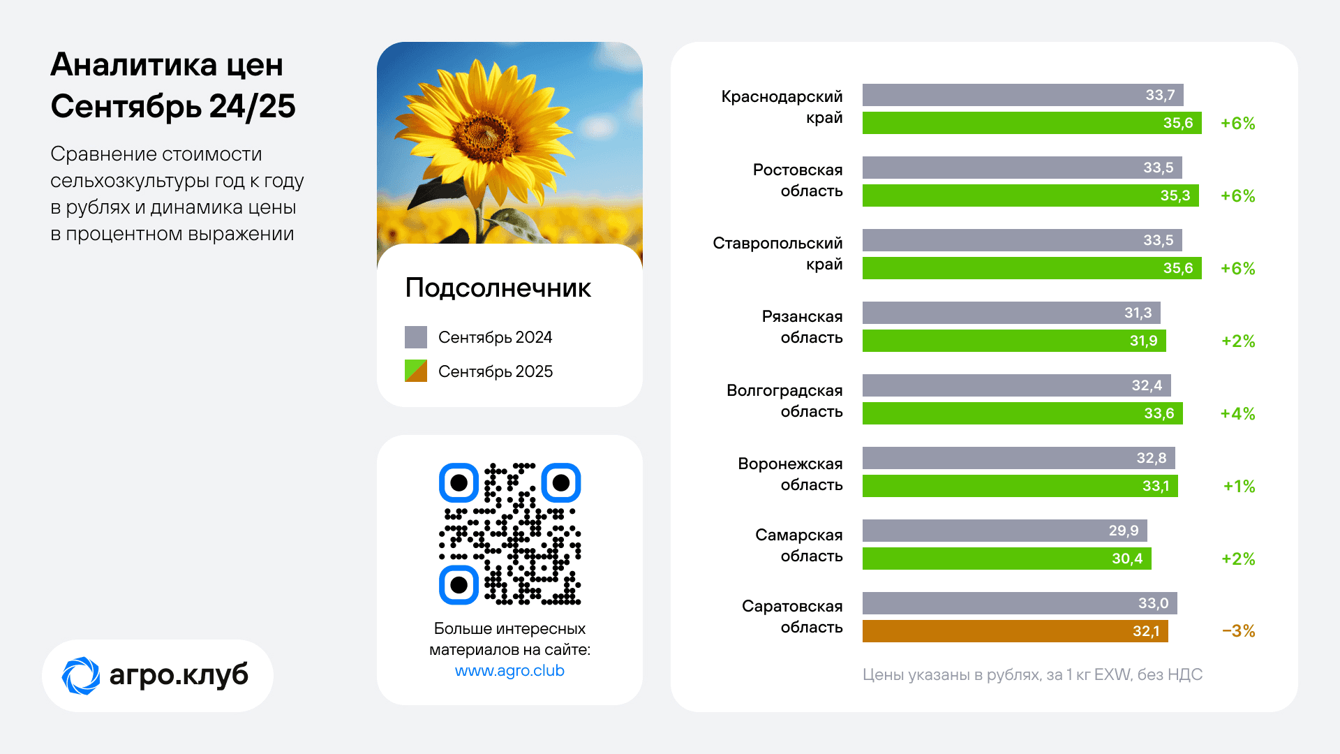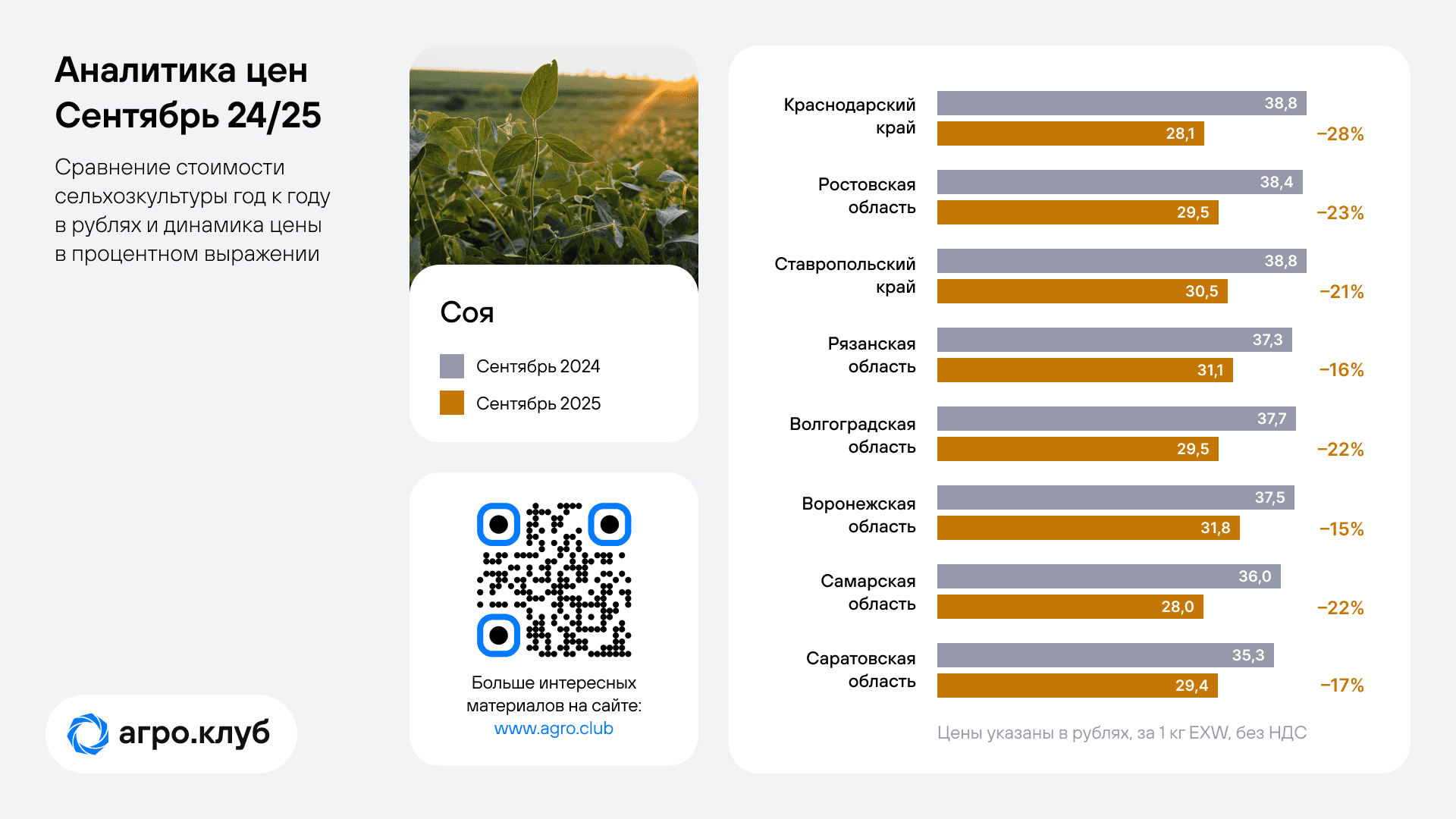 Информация собрана на основе анализа цен ведущих экспортеров и переработчиков, с которыми сотрудничает Агро.Клуб.