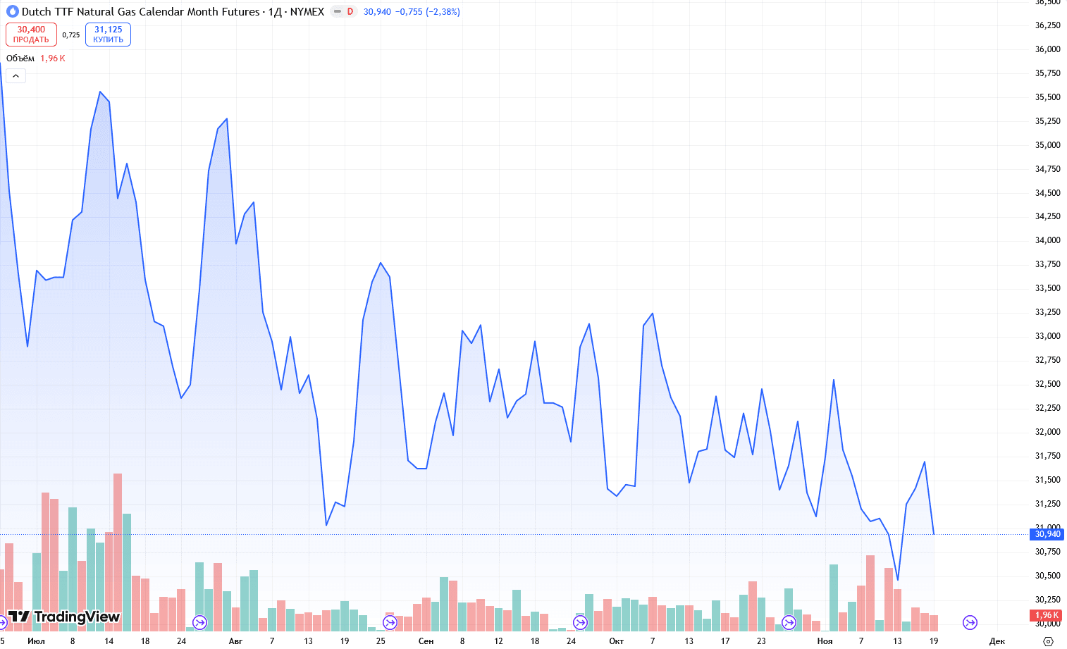 Фьючерсы на пшеницу с поставкой в декабре, активность которых снизилась после истечения срока действия опционов на ближайшую позицию, снизились на 0,5% до 189,75 евро после достижения недельного максимума на уровне 192,00 евро.
