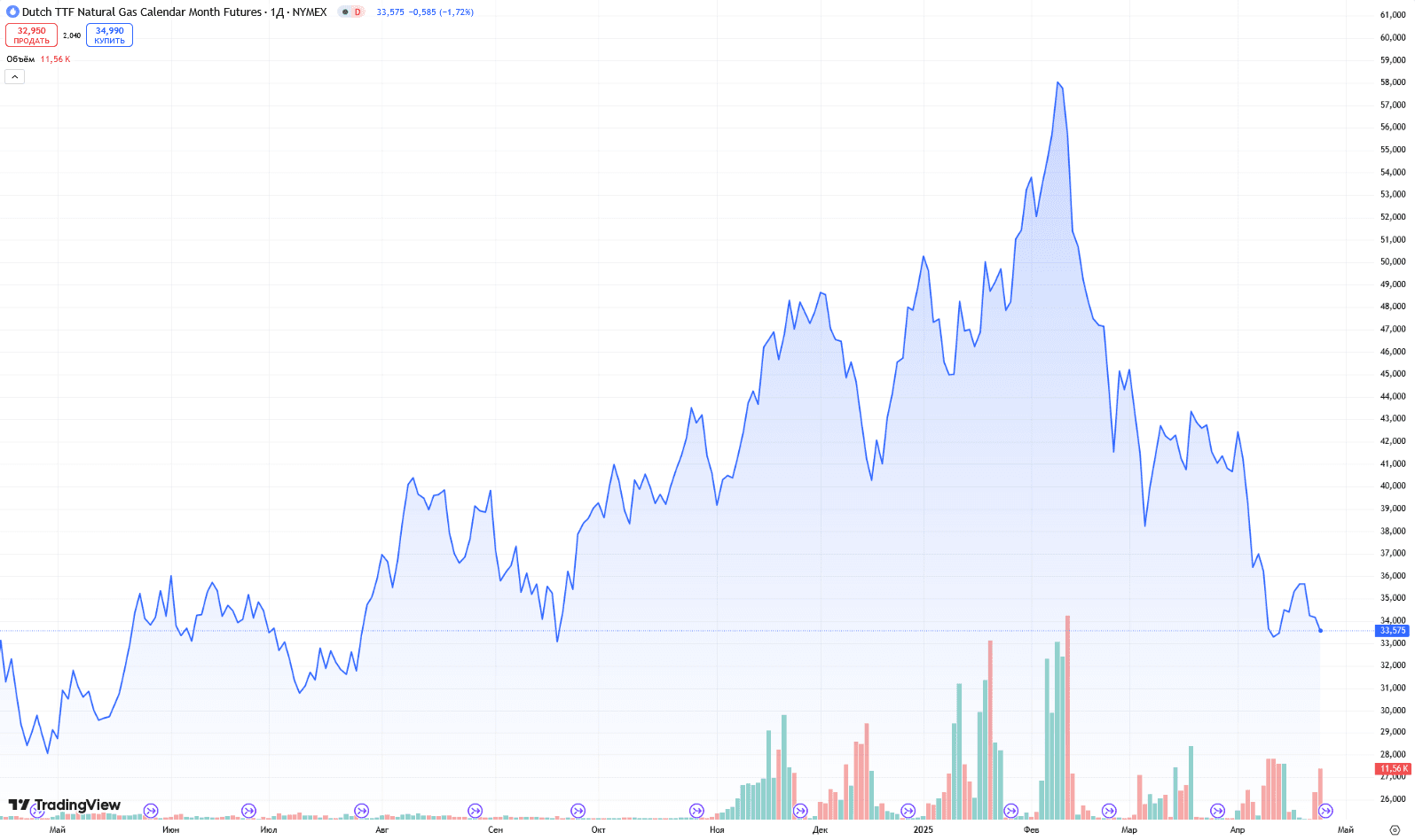 Фьючерсы на май с поставкой в начале месяца также выросли на 0,1% до 209,00 евро, удержав отметку выше минимума контракта вторника в 206,75 евро.
