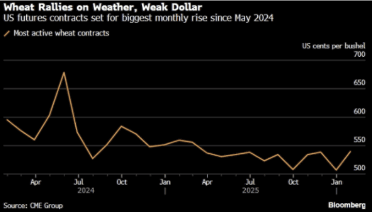 Ранее в этом месяце рост цен на пшеницу был вызван опасениями по поводу возможных заморозков из-за сильной зимней бури в США.