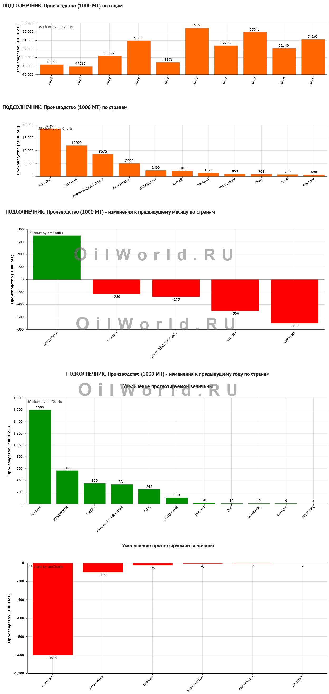 «Мировое производство подсолнечника сократилось на 1,0 млн тонн из-за снижения производства на Украине, в России, ЕС и Турции; отчасти это компенсируется ростом производства подсолнечника в Аргентине», но выше чем в прошлом сезоне, — сообщило министерство.