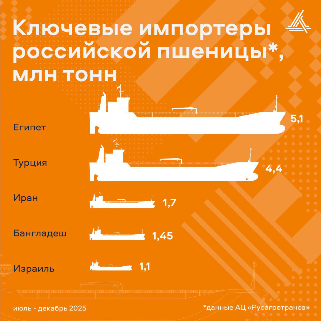 Рейтинг стран-импортеров российской пшеницы за июль-декабрь 2025 года
