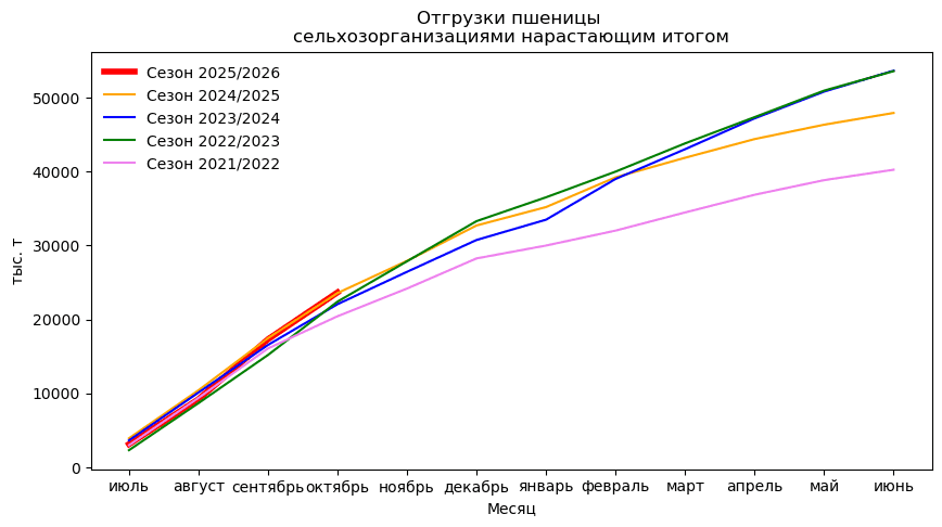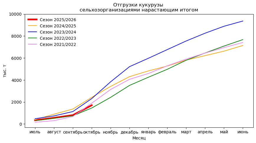 В октябре 2025 г. сельхозорганизации РФ отгрузили 9,3 млн т зерновых и зернобобовых культур (включая кукурузу), что на 4% больше, чем за аналогичный период в прошлом сезоне. Об этом сообщает агентство Зерно Он-Лайн со ссылкой на Росстат.