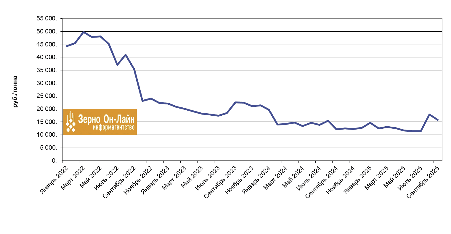 В СФО, на который в прошлом году пришлось 64% всего урожая гречихи в России, средняя цена этой культуры сентябре 2025 г. составила 11744 руб./т, что на 13% меньше, чем в августе 2025 г.
